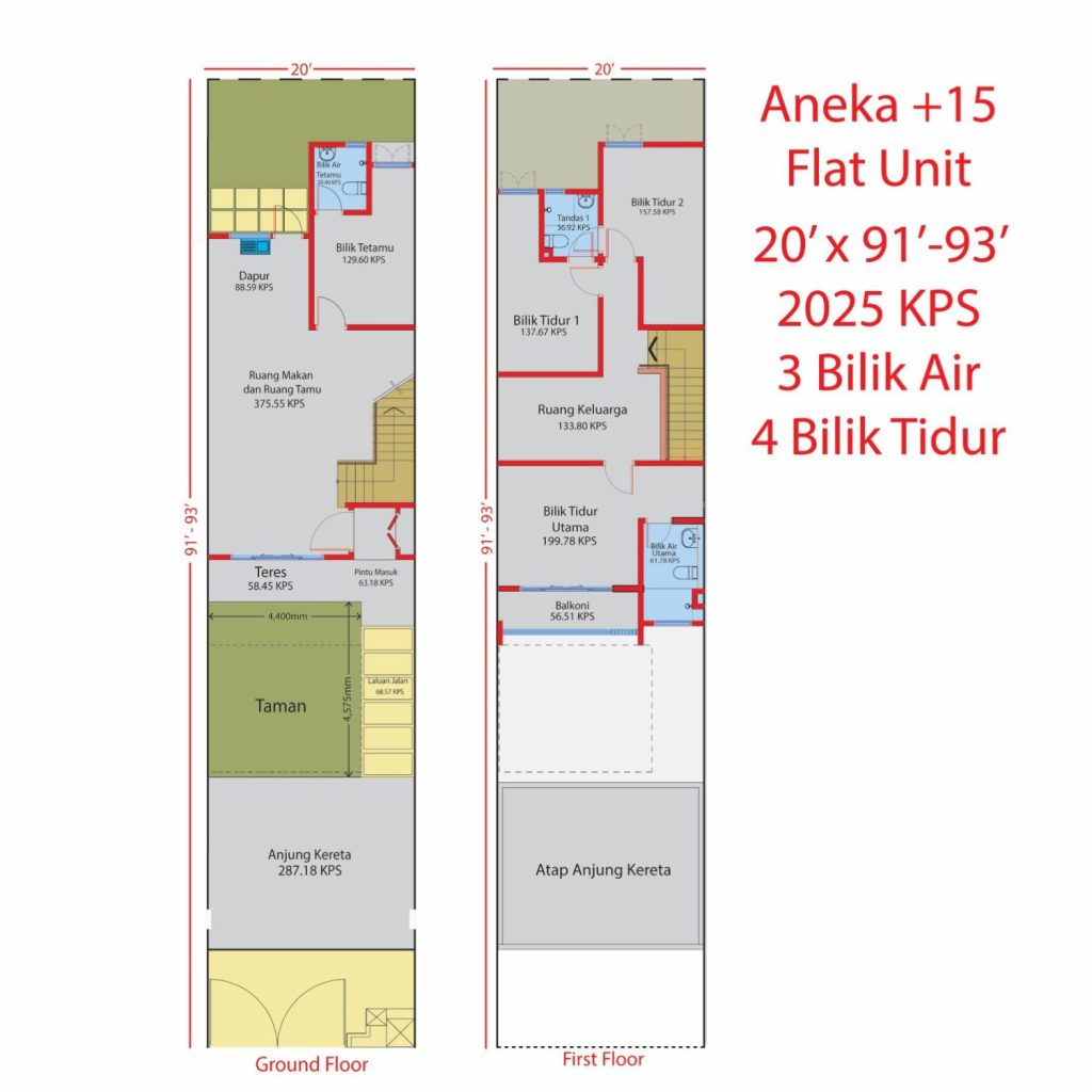 Land size: Starting from 20′ x 91′ – 93′